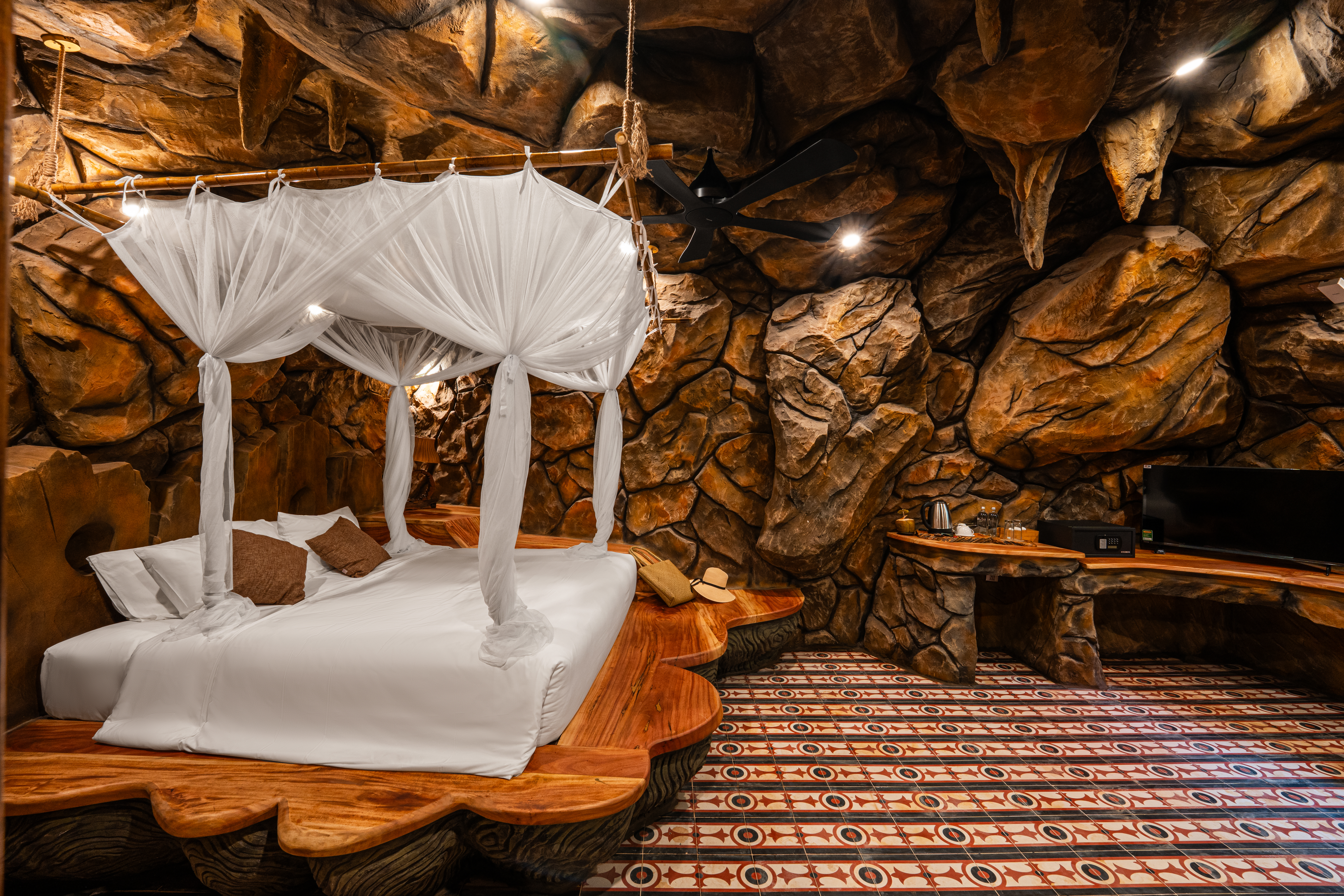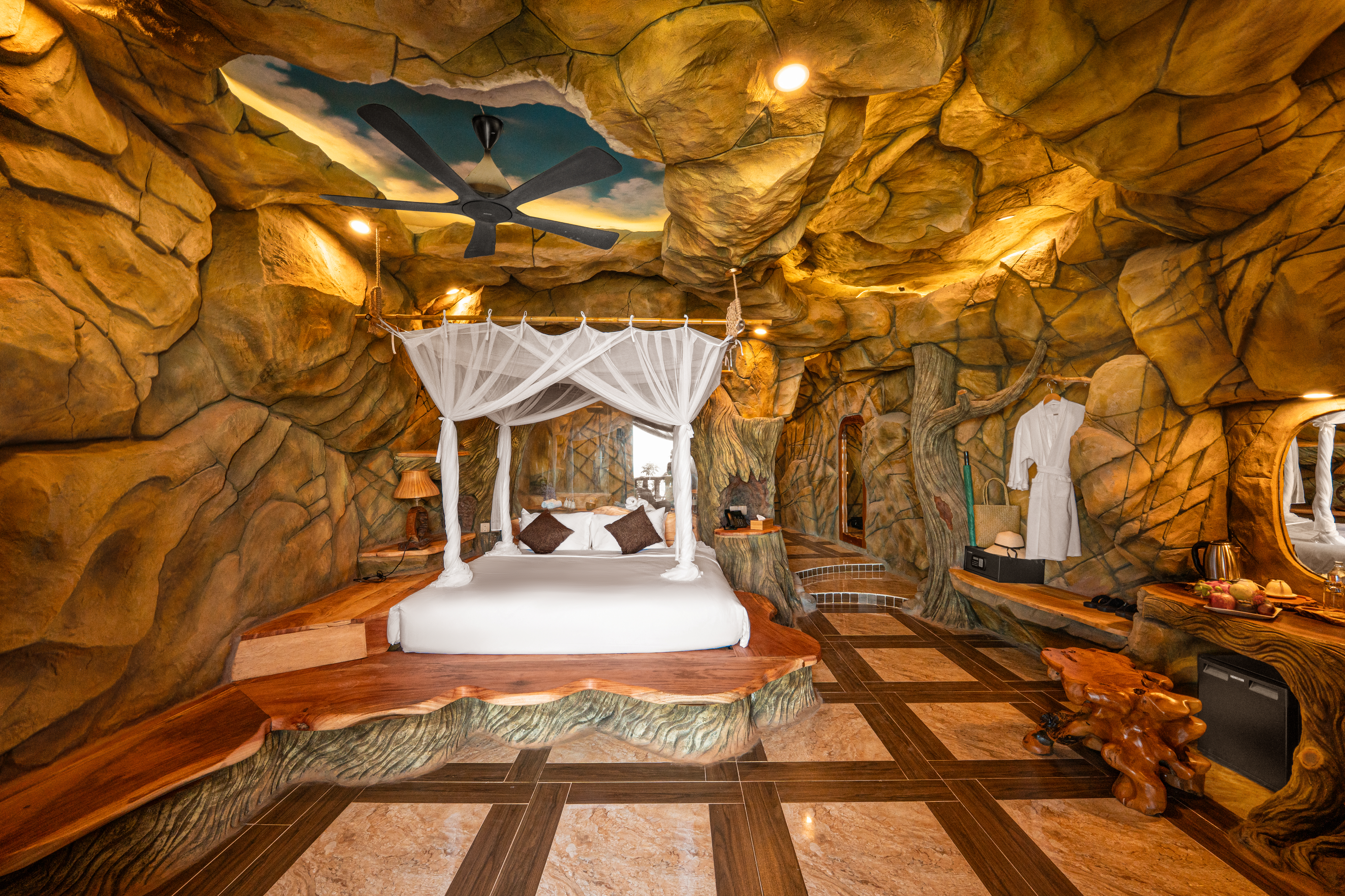 Ẩn mình trên đỉnh Điện Tiên hùng vĩ, nơi những khối đá cổ hàng triệu năm và rừng nguyên sinh giao thoa, The Peak Sanctuary không được “xây dựng” theo cách thông thường — mà được khắc tạc từ chính thiên nhiên. Đây không phải một khu nghỉ dưỡng để đến rồi rời đi. Đây là một vùng trú ẩn, dành cho những tâm hồn đang tìm kiếm sự tĩnh lặng, tái tạo và kết nối sâu với chính mình. Các không gian lưu trú được đặt sâu trong lòng núi, bám theo hình khối tự nhiên của đá, giữ gần như nguyên vẹn cấu trúc địa chất bản địa. Ánh sáng được dẫn vào một cách tiết chế. Âm thanh được lọc bớt. Mọi chi tiết đều hướng đến sự an yên — như bước vào một hang động cổ xưa, nhưng được nâng cấp thành trải nghiệm nghỉ dưỡng đương đại. Vật liệu không mang tính trang trí, mà mang tính bản địa: Đá núi Điện Tiên Gỗ rừng tự nhiên Tre, nứa, đá cuội Các chi tiết thủ công gợi nhớ văn hóa đảo ngọc Không gian mở ra hướng rừng, hướng núi, hướng biển — nơi ánh bình minh len qua khe đá, và gió trở thành một liệu pháp tự nhiên, chậm rãi và chữa lành. The Peak Sanctuary không hứa hẹn xa hoa. Nơi đây mang đến sự tĩnh tại — thứ xa xỉ hiếm hoi nhất của thời đại.
