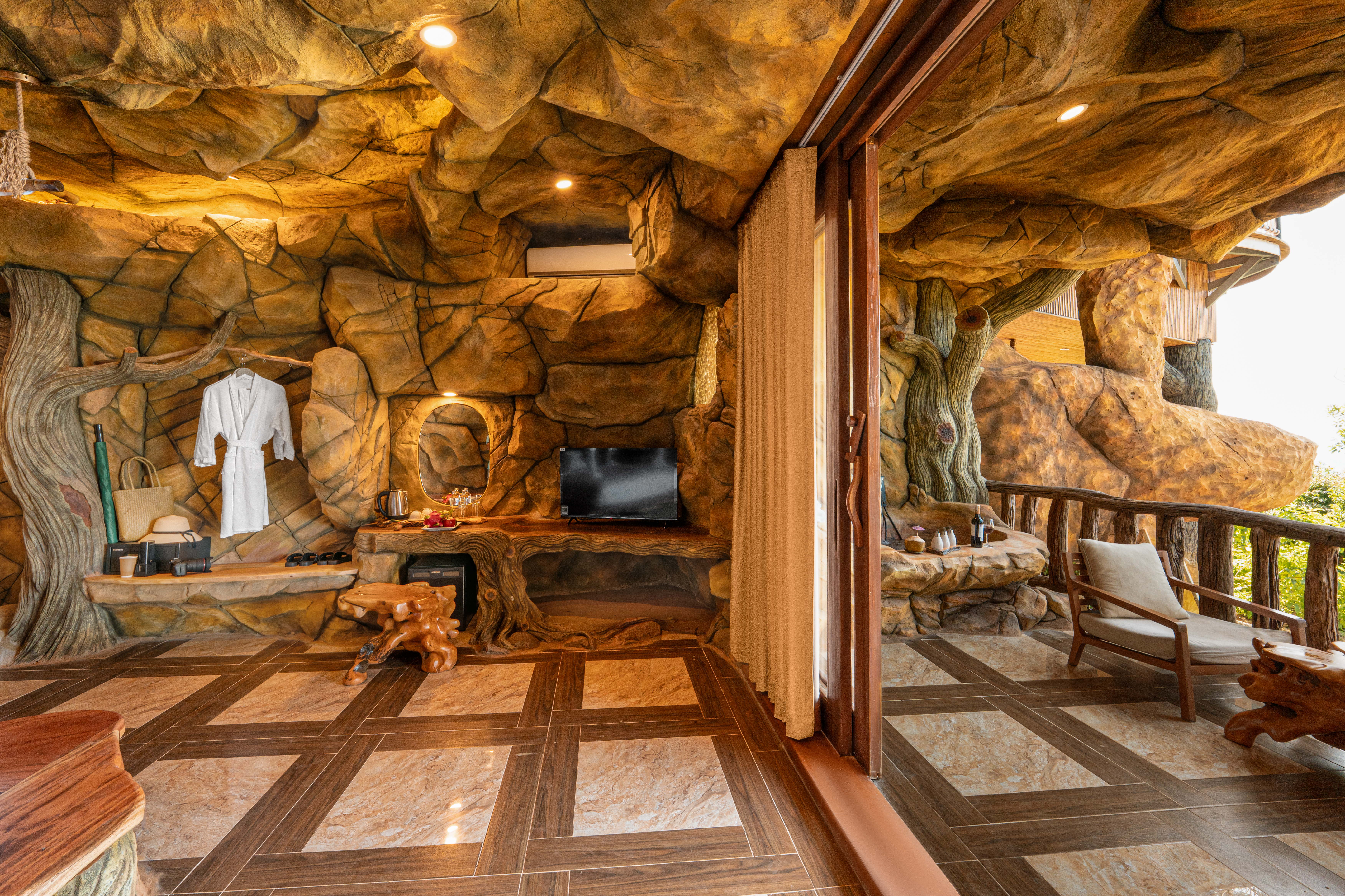 Ẩn mình trên đỉnh Điện Tiên hùng vĩ, nơi những khối đá cổ hàng triệu năm và rừng nguyên sinh giao thoa, The Peak Sanctuary không được “xây dựng” theo cách thông thường — mà được khắc tạc từ chính thiên nhiên. Đây không phải một khu nghỉ dưỡng để đến rồi rời đi. Đây là một vùng trú ẩn, dành cho những tâm hồn đang tìm kiếm sự tĩnh lặng, tái tạo và kết nối sâu với chính mình. Các không gian lưu trú được đặt sâu trong lòng núi, bám theo hình khối tự nhiên của đá, giữ gần như nguyên vẹn cấu trúc địa chất bản địa. Ánh sáng được dẫn vào một cách tiết chế. Âm thanh được lọc bớt. Mọi chi tiết đều hướng đến sự an yên — như bước vào một hang động cổ xưa, nhưng được nâng cấp thành trải nghiệm nghỉ dưỡng đương đại. Vật liệu không mang tính trang trí, mà mang tính bản địa: Đá núi Điện Tiên Gỗ rừng tự nhiên Tre, nứa, đá cuội Các chi tiết thủ công gợi nhớ văn hóa đảo ngọc Không gian mở ra hướng rừng, hướng núi, hướng biển — nơi ánh bình minh len qua khe đá, và gió trở thành một liệu pháp tự nhiên, chậm rãi và chữa lành. The Peak Sanctuary không hứa hẹn xa hoa. Nơi đây mang đến sự tĩnh tại — thứ xa xỉ hiếm hoi nhất của thời đại.